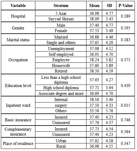 Table 2. The average score of the patient's trust in the physician in the educational hospitals of Gorgan
